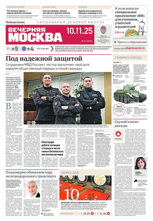«Вечерняя Москва» — ежедневная российская вечерняя газета, старейшее из вечерних изданий в России, учрежденное в 1923 году. Выходит пять дней в неделю, кроме субботы и воскресенья. Отличается тем, что рассказывает о событиях еще не завершившегося дня. Оперативно освещает хронику и особенности жизни Москвы, охватывает все слои общества и большинство профессиональных и возрастных групп читателей.Издание представлено тремя выпусками – утренним ежедневным, вечерним (выходит три раза в неделю), еженедельным (выходит по четвергам).