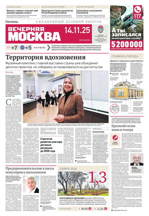 «Вечерняя Москва» — ежедневная российская вечерняя газета, старейшее из вечерних изданий в России, учрежденное в 1923 году. Выходит пять дней в неделю, кроме субботы и воскресенья. Отличается тем, что рассказывает о событиях еще не завершившегося дня. Оперативно освещает хронику и особенности жизни Москвы, охватывает все слои общества и большинство профессиональных и возрастных групп читателей.Издание представлено тремя выпусками – утренним ежедневным, вечерним (выходит три раза в неделю), еженедельным (выходит по четвергам).