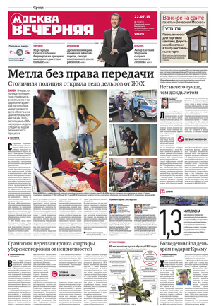 «Вечерняя Москва» — ежедневная российская вечерняя газета, старейшее из вечерних изданий в России, учрежденное в 1923 году. Выходит пять дней в неделю, кроме субботы и воскресенья. Отличается тем, что рассказывает о событиях еще не завершившегося дня. Оперативно освещает хронику и особенности жизни Москвы, охватывает все слои общества и большинство профессиональных и возрастных групп читателей.Издание представлено тремя выпусками – утренним ежедневным, вечерним (выходит три раза в неделю), еженедельным (выходит по четвергам).