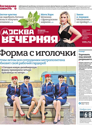 «Вечерняя Москва» — ежедневная российская вечерняя газета, старейшее из вечерних изданий в России, учрежденное в 1923 году. Выходит пять дней в неделю, кроме субботы и воскресенья. Отличается тем, что рассказывает о событиях еще не завершившегося дня. Оперативно освещает хронику и особенности жизни Москвы, охватывает все слои общества и большинство профессиональных и возрастных групп читателей.Издание представлено тремя выпусками – утренним ежедневным, вечерним (выходит три раза в неделю), еженедельным (выходит по четвергам).